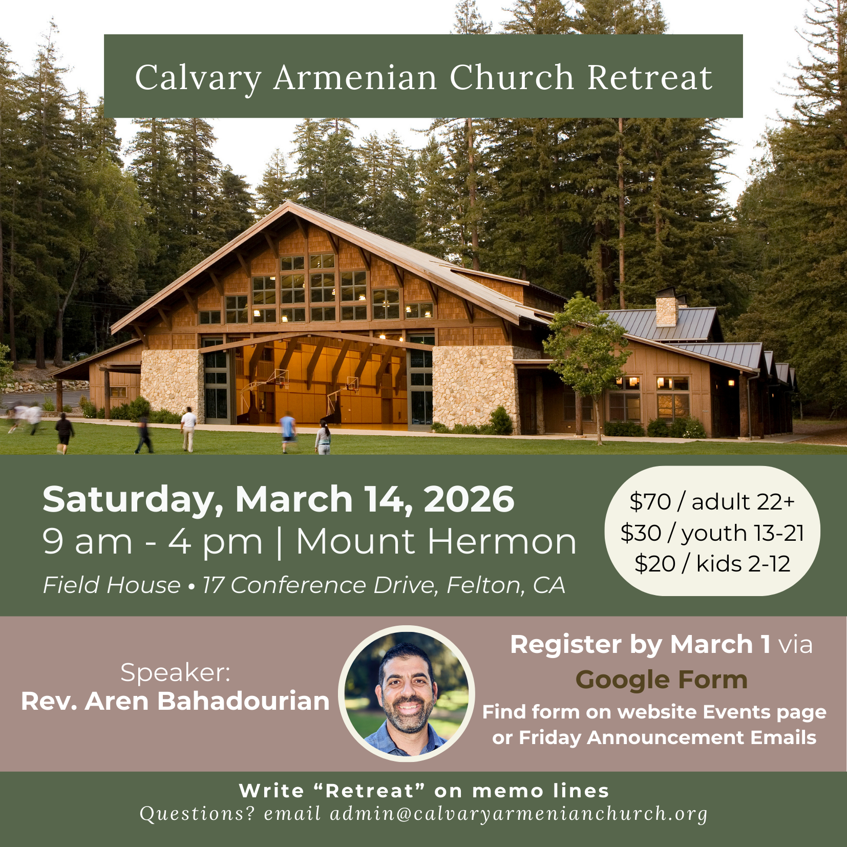 2026 Annual Retreat at Mount Hermon - Saturday, March 14, 9:00 am - 4:00 pm